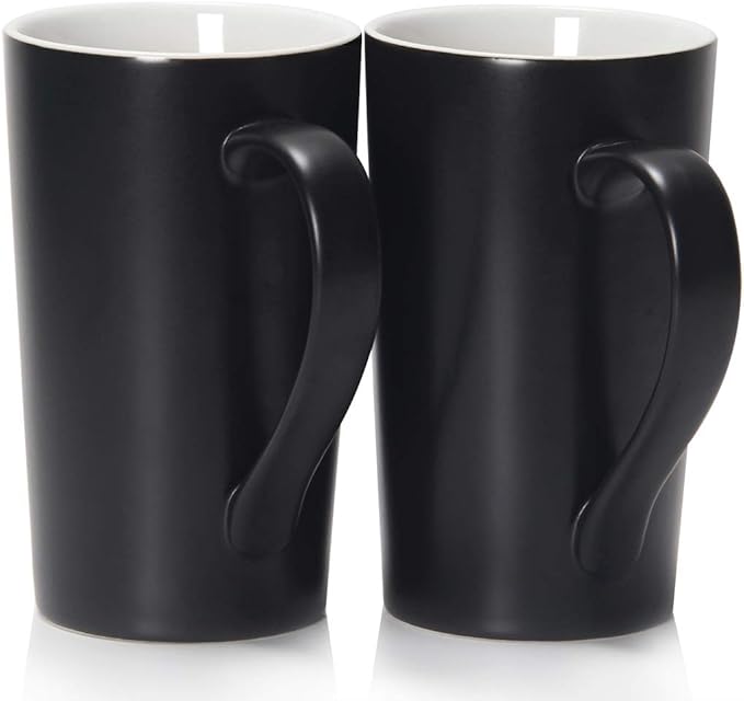 Smilatte 20 oz Large Coffee Mugs, M007 Plain Tall Ceramic Cup with Handle for Dad Men, Set of 2, Black