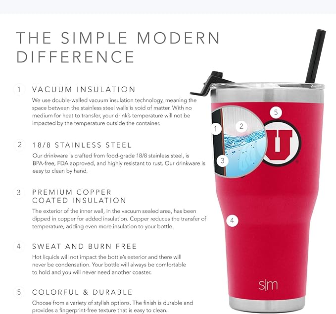 Simple Modern Officially Licensed Collegiate Utah Utes Tumbler with Straw and Flip Lid | Insulated Stainless Steel 30oz Thermos | Cruiser Collection | University of Utah