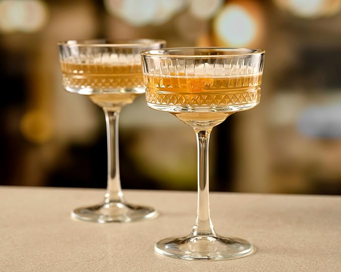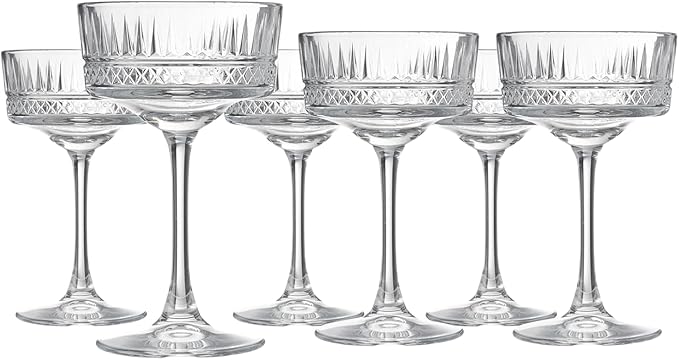 Pasabahce Vintage Coupe Glasses Set Of 6 - Exclusive Champagne, Cocktail, Martini, Wine Glasses - Long Stem Glassware - 8.8 oz - Perfect for Parties, Gifts, Housewarming, Weddings,Aniversary
