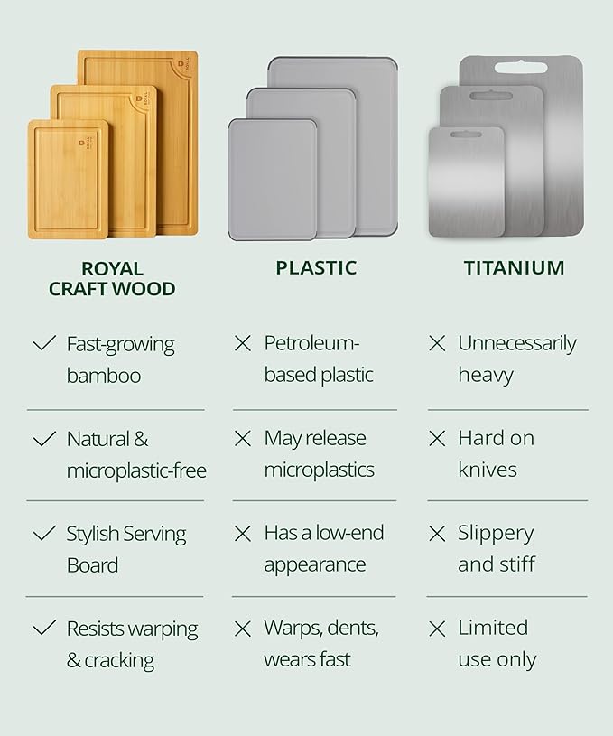 ROYAL CRAFT WOOD Wooden Cutting Boards for Kitchen Meal Prep & Serving - Premium Bamboo Wood Serving Board Set with Deep Juice Groove Side Handles - Charcuterie & Chopping Butcher Block for Meat