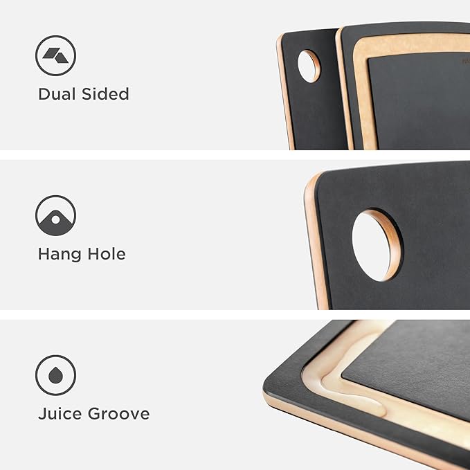 About This 27 x 17. 5 inch cutting board, slate with natural color juice groove; dual-sided cutting surface Made in... Read more