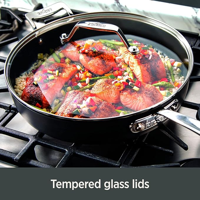 All-Clad Essentials Hard Anodized Nonstick Sauce Pan Set 4 Piece, 8, 10.25 Inch, 4 Quart Oven Broiler Safe 500F Pots and Pans, Cookware Black
