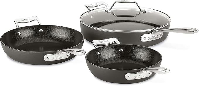 About This Set includes: 8.5 & 10.5-inch fry pans and 4-quart saute pan w/ lid - kitchen staples to sear/fry... Read more