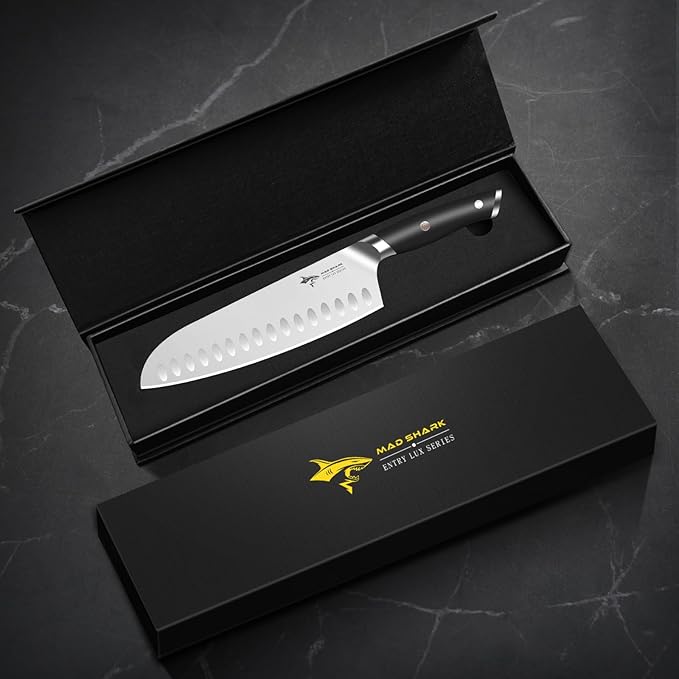 MAD SHARK Kitchen Knife, Professional 8-inch Santoku Knife, Made of German High Carbon Stainless Steel, Non-stick Ultra Sharp Kitchen Knife with Ergonomic Handle, Gift Box