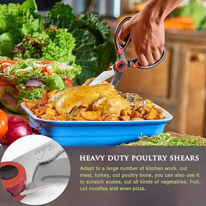 Kitchen Shears, Acelone Premium Heavy Duty Shears Ultra Sharp Stainless Steel Multi-function Kitchen Scissors for Chicken/Poultry/Fish/Meat/Vegetables/Herbs/BBQ… (Red black)
