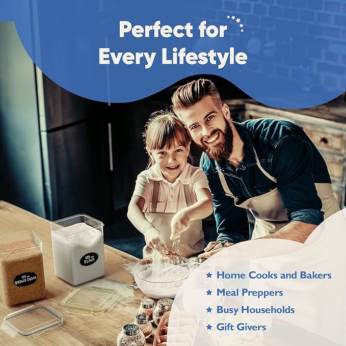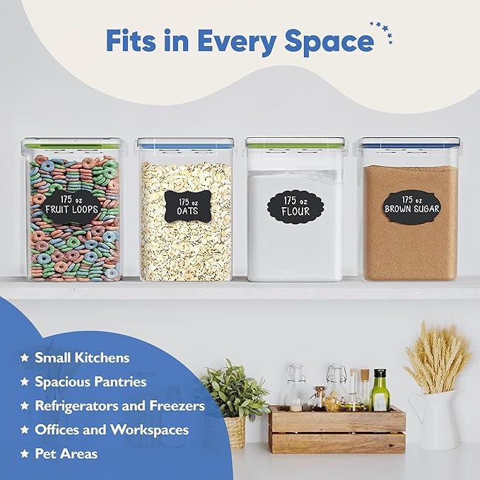 About This Kitchen Storage Boxes: Set of 4 extra large airtight food containers, a board marker, 4 measuring spoons and... Read more