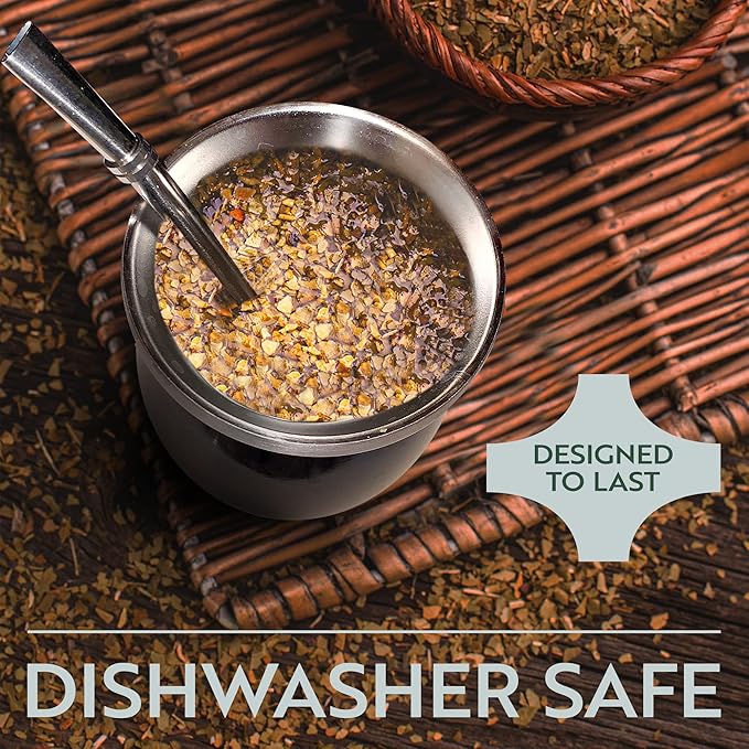 Norte Yerba Mate Cup Kit, 8-Ounces Traditional Mate Tea Cup/Gourd Set | Includes 2 Bombillas (Yerba Mate Straw) & Cleaning Brush, Stainless Steel Cup, Double-Walled, Easy to Clean | Black