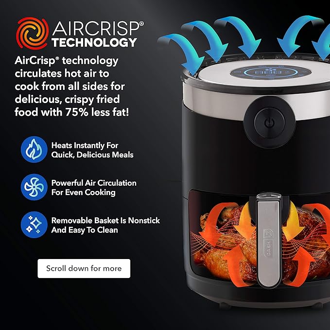 About This HEALTHIER FRIED FOOD: Dash AirCrisp Pro Digital Air Fryer uses AirCrisp technology instead of oil to help reduce... Read more
