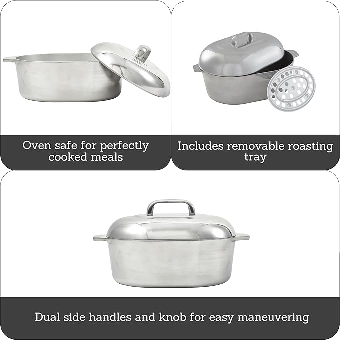 IMUSA USA Heavy Duty Cajun Oval Aluminum Roaster 15, Silver