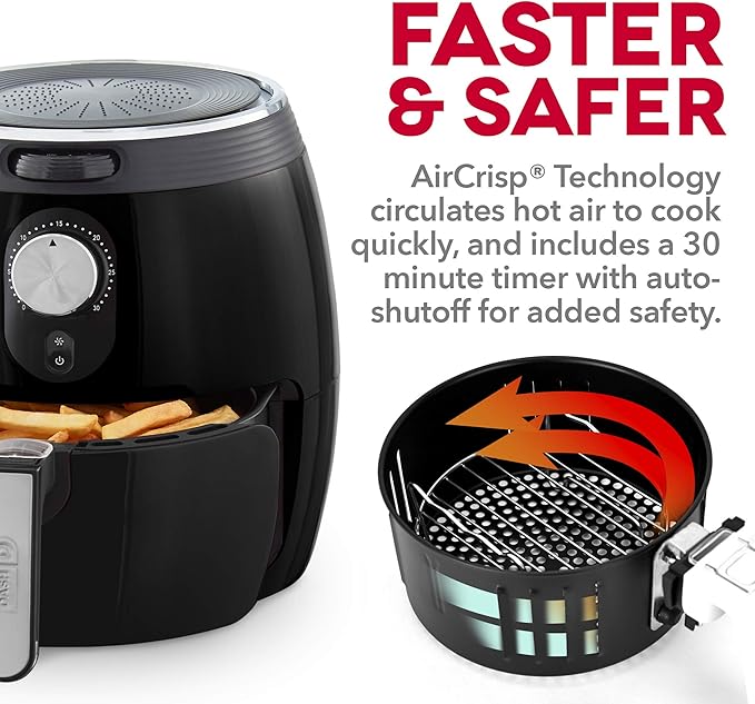 About This HEALTHIER FRIED FOOD: Dash Deluxe Air Fryer uses Aircrisp technology (instead of oil) to reduce added fat by... Read more