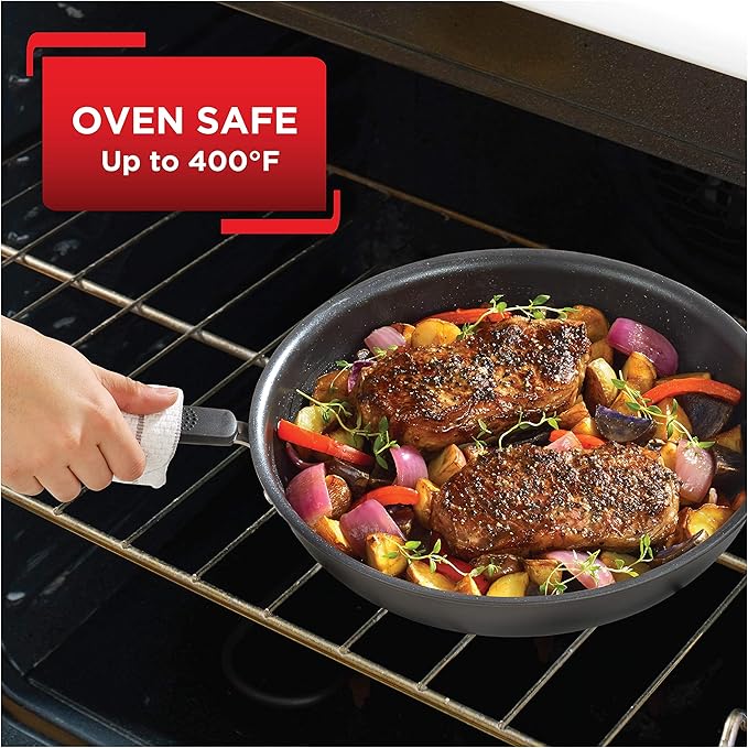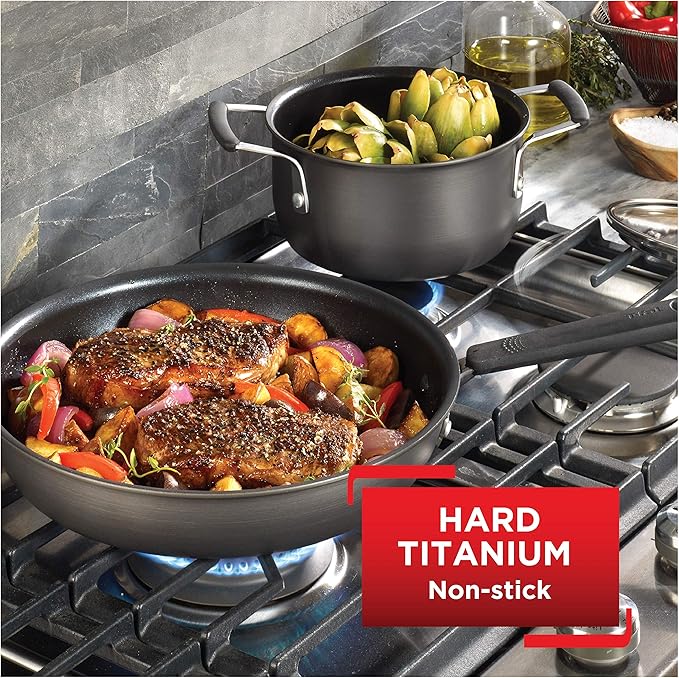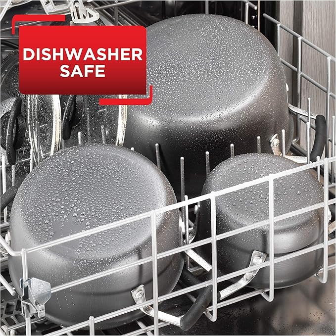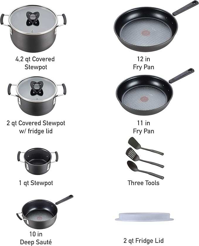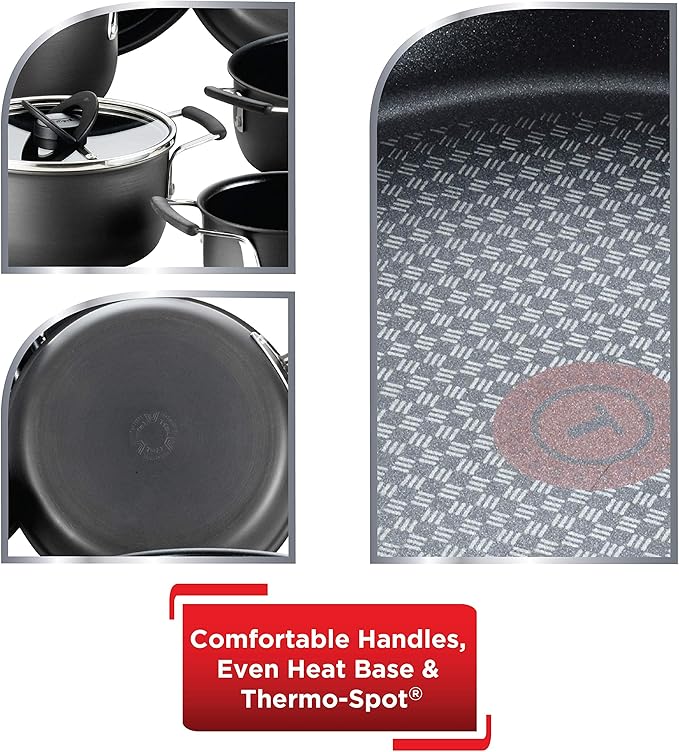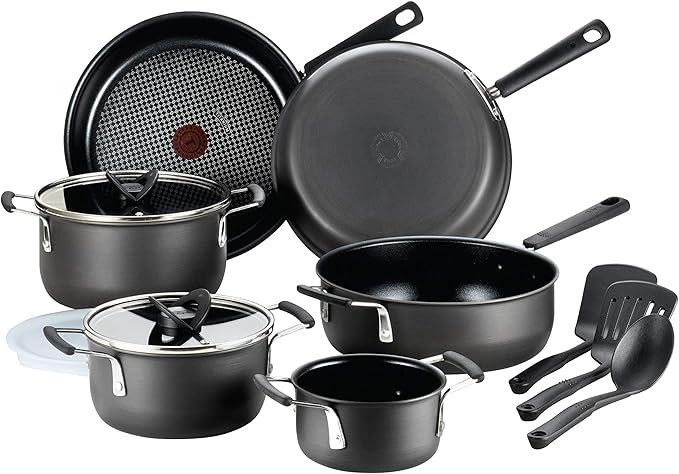 T-fal All In One Hard Anodized Nonstick Cookware Set 12 Piece Pots and Pans, Dishwasher Safe Black
