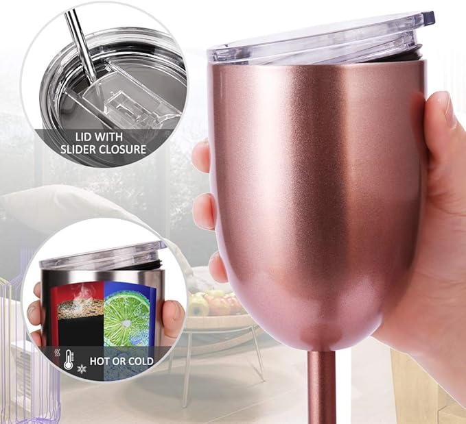 AMZUShome Stainless Steel Wine Glasses Cups.Double Walled Vacuum Insulated Wine Tumbler With Lid and Straw.Friendship,Christmas,Birthday Gifts for Women Men Friends Dad Mom(10oz Rose Gold)