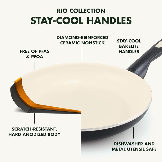 GreenPan Rio 8" and 10" Frying Pan Skillet Set, PFAS-Free, Healthy Ceramic Nonstick Cookware, Stay-Cool Bakelite Handles, Dishwasher Safe, Easy Clean, Durable Performance, Black