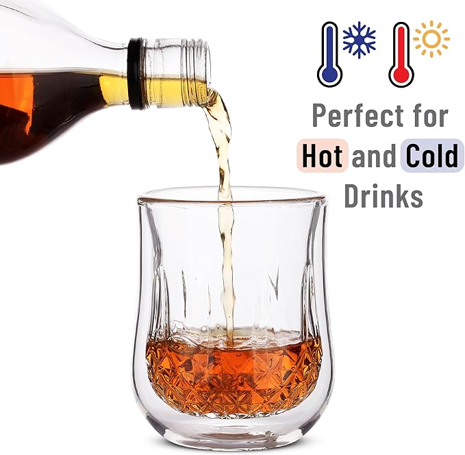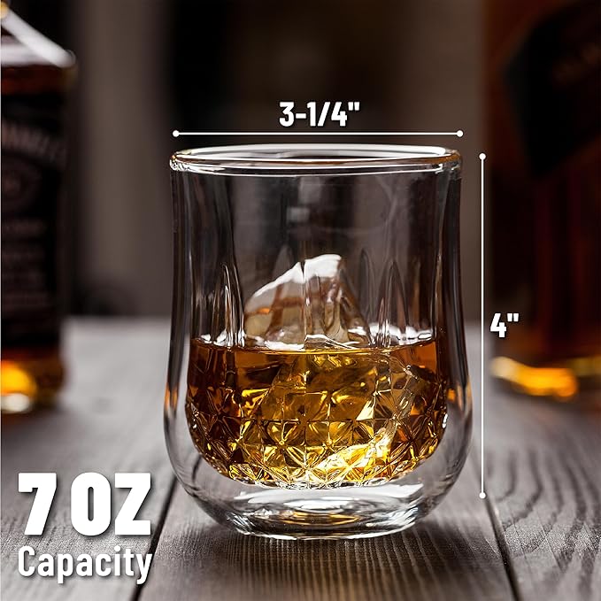 BTaT- Whiskey Glasses, Double Wall Glasses, Set of 4, Bourbon Glasses, Cocktail Glasses, Scotch Glasses, Old Fashioned Glass, Rocks Glass, Crystal Glasses, Vodka Glasses, Gifts