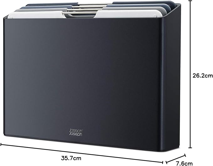Joseph Joseph Folio 4-Piece Colour coded Cutting Board Set, Slimline case for organized Kitchen storage, Graphite