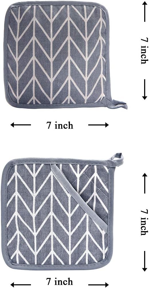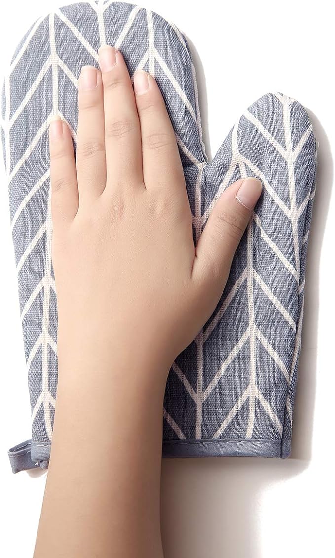 Oven Mitts and Potholders BBQ Gloves-Oven Mitts and Pot Holders Sets with Recycled Cotton Infill Silicone Non-Slip Cooking Gloves for Cooking Baking Grilling (4-Piece Set,Grey)