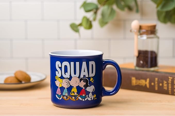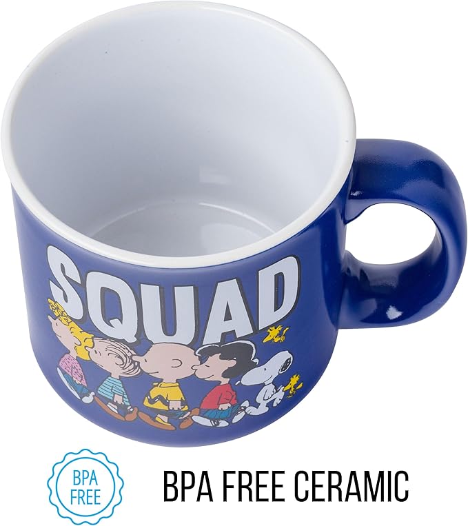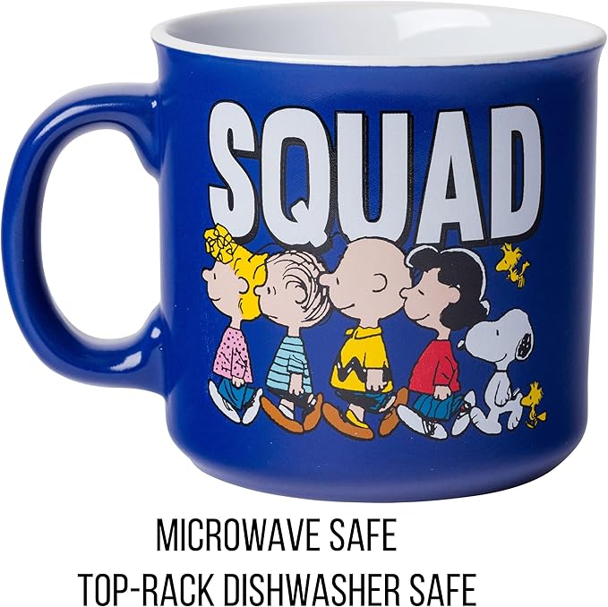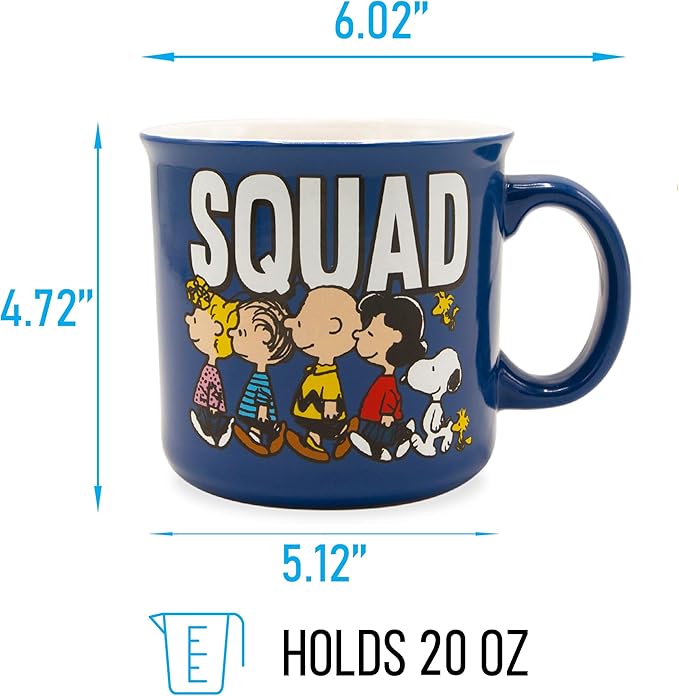 Silver Buffalo Peanuts Squad Featuring Sally, Linus, Charlie Brown, Lucy, Snoopy, and Woodstock Ceramic Camper Mug, 20 Ounces