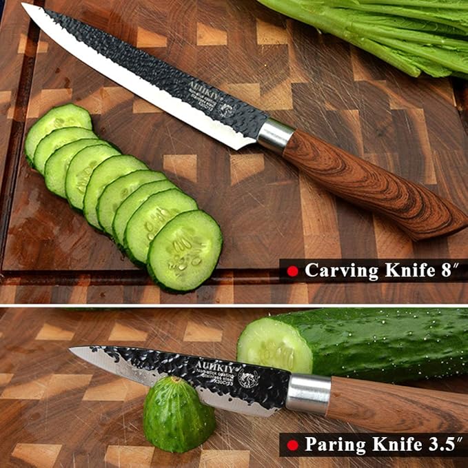 About This ✅ ALL-IN-ONE KNIFE SET,included 8"Chef Knife,8"small Cleaver,8"Carving Knife,3.5"Paring Knife,Scissors,This kitchen knives comes in a beautifully designed and high-quality... Read more
