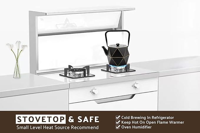 Toptier Cast Iron Teapot, Stovetop Safe Japanese Cast Iron Tea Kettle, Diamond Design Tea Pot with Removable Infuser for Loose Tea, 30 Ounce (900 ml), Black