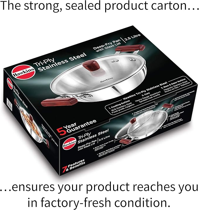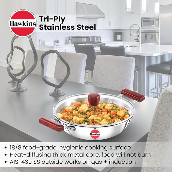 About This Material: Superior, rust-proof, food-grade Tri-Ply Stainless Steel. It comes with a glass lid Hawkins Tri-Ply Stainless Steel Cookware... Read more