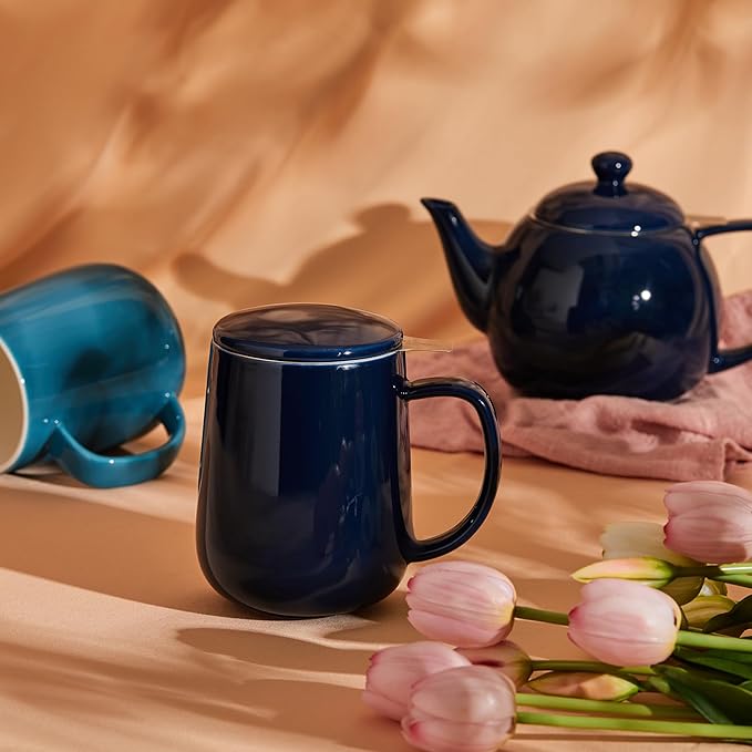 Sweese 20oz Porcelain Teacup with Infuser and Lid, Large Tea Mug for Loose Tea - Microwave and Dishwasher Safe, Insulated, Modern Design for Tea Lovers