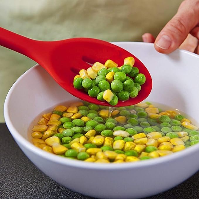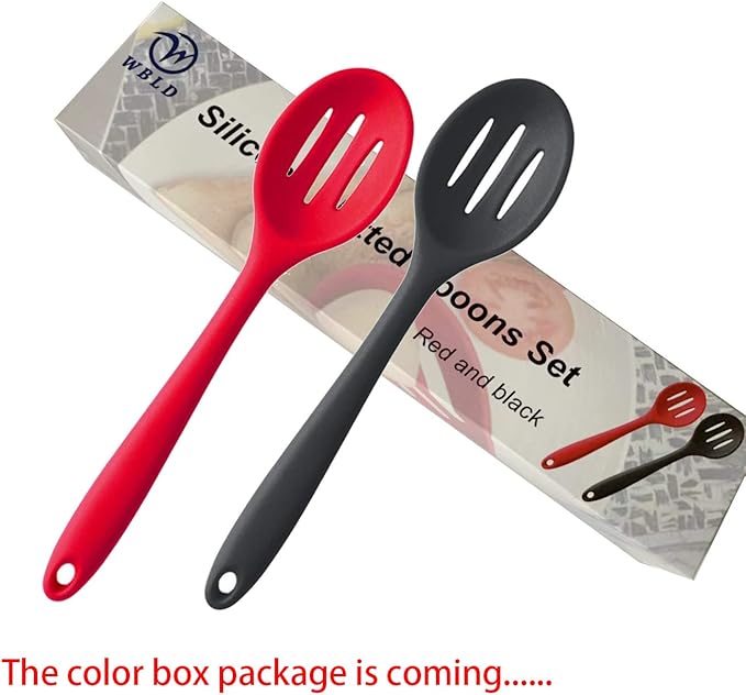 Silicone Nonstick Slotted Spoons Set 2,High Heat Resistant, Hygienic Design Cooking Baking Spoons Set for Cooking Stirring, Mixing and Serving,Red and Black with Color Box