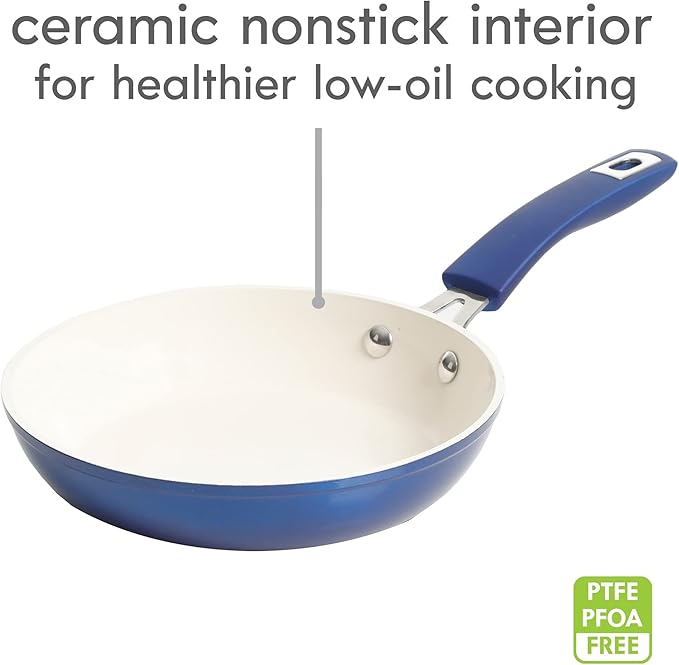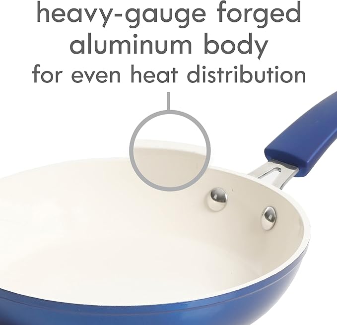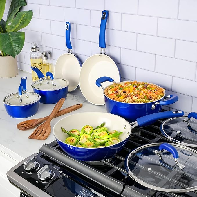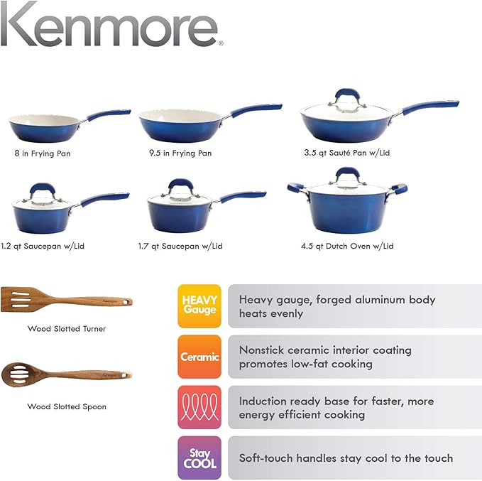Kenmore Arlington Nonstick Ceramic Coated Forged Aluminum Induction Cookware with Bakelite Handles, 12-Piece Set, Metallic Blue