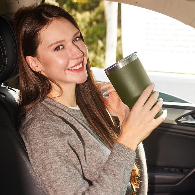 MEWAY 30oz Insulated Tumbler With Lids and Straws,Stainless Steel Double Vacuum Coffee Tumbler Cup, Brush, Durable Powder Coated Coffee Cup for Cold & Hot Drinks, Office, Travel(Army Green,8 PACK)
