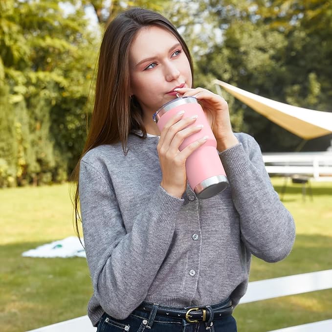 MEWAY 30oz Insulated Tumbler With Lids and Straws,Stainless Steel Double Vacuum Coffee Tumbler Cup, Brush, Durable Powder Coated Coffee Cup for Cold & Hot Drinks, Office, Travel(Pink,4 PACK)