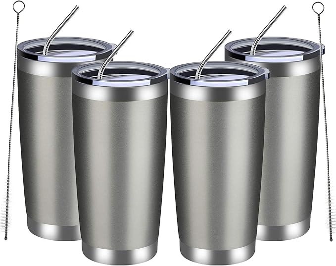 MEWAY 20oz Tumbler 4 Pack Double Wall Vacuum Insulated Travel Mug Bulk, Stainless Steel Tumblers with Lid and Straw, Durable Powder Coated Coffee Cups for Cold & Hot Drinks (Cold Gray, 4)
