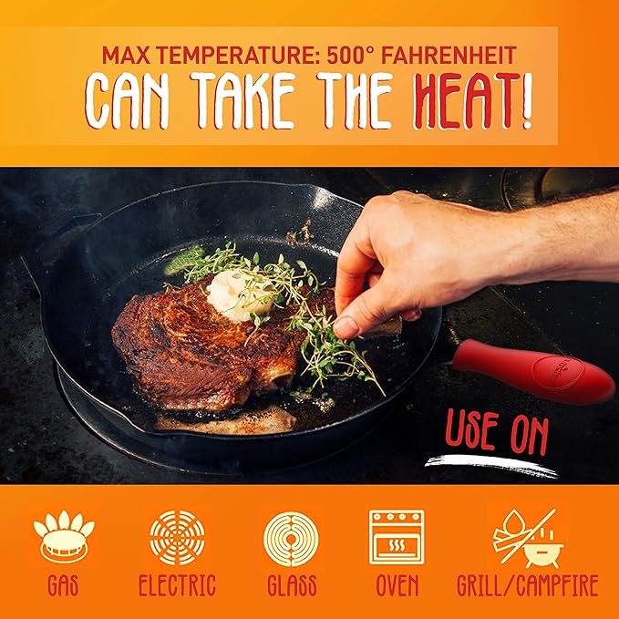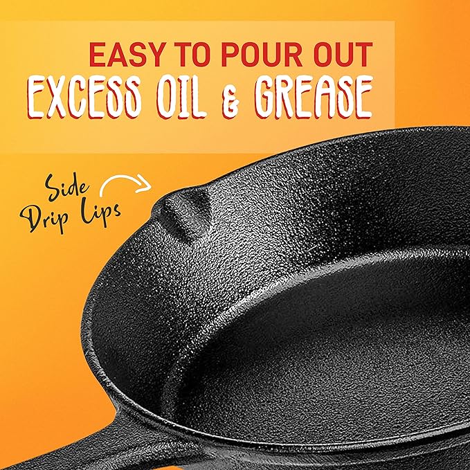 NutriChef 3pc Cast Iron Skillet Set - Nonstick Pans with Drip Spout, Silicone Handles, For All Cooktops
