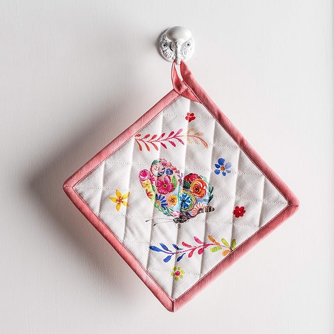 Maison d' Hermine Pot Holders Set 100% Cotton Heat Resistant Potholders 8" x 8" Hot Pads with Loop Cooking, Grilling, Kitchen, Handling Hot Pans Spring/Summer (Pack of 2, Happy Florals - High Summer)