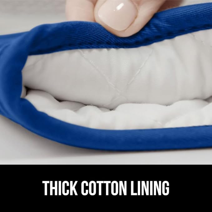 GORILLA GRIP BPA-Free Soft Silicone Oven Mitts, Heat Resistant and Waterproof Cooking Gloves, Thick Cotton Lining, Flexible Gripping for Baking Grilling, Kitchen Potholders Set of 2, 12.5x8.3, Blue