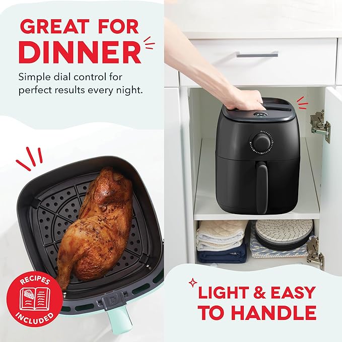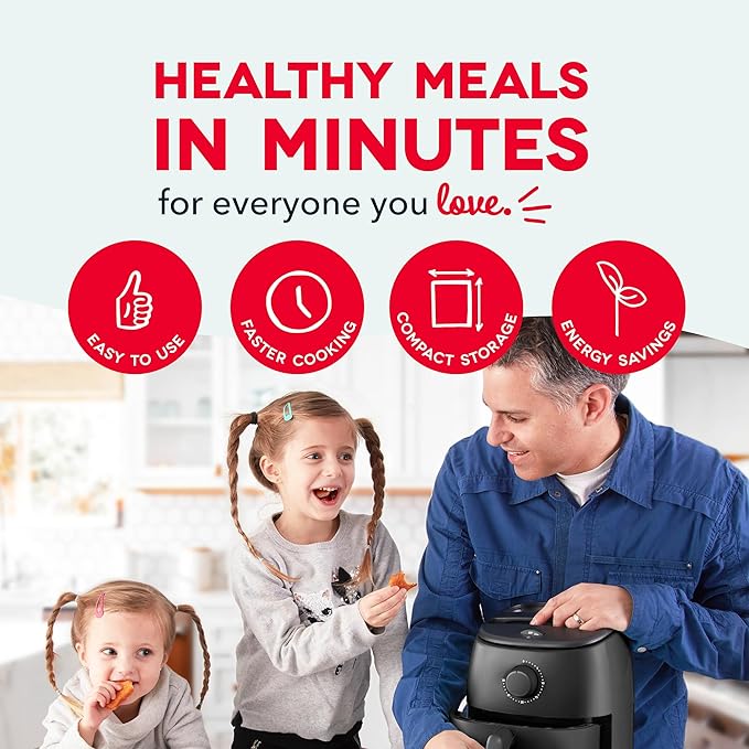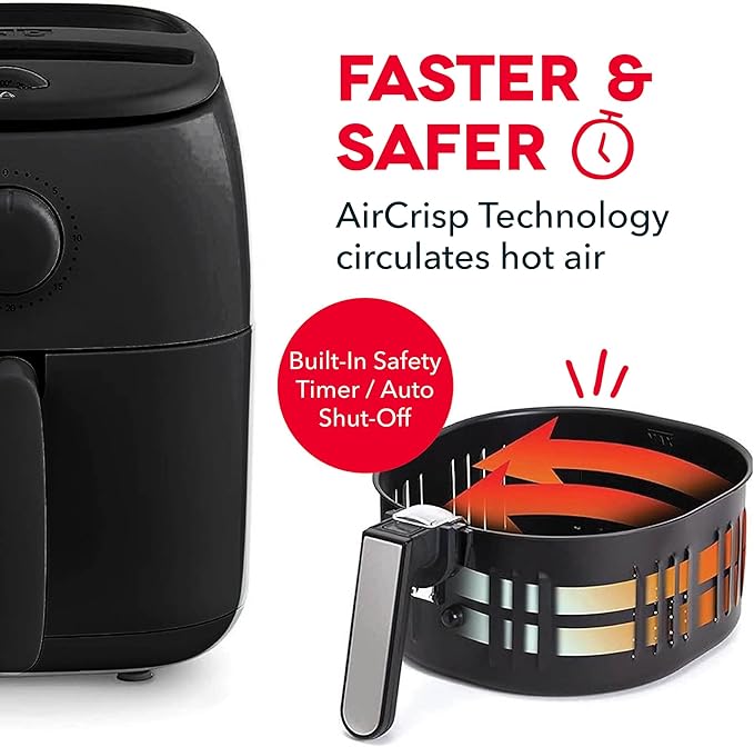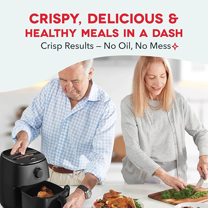 DASH Tasti-Crisp™ Electric Air Fryer Oven, 2.6 Qt., Black – Compact Air Fryer for Healthier Food in Minutes, Ideal for Small Spaces - Auto Shut Off, Analog, 1000-Watt