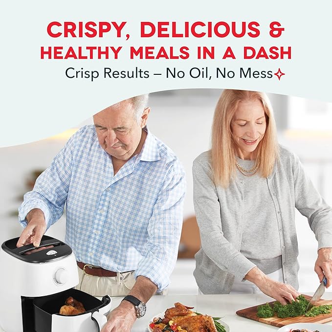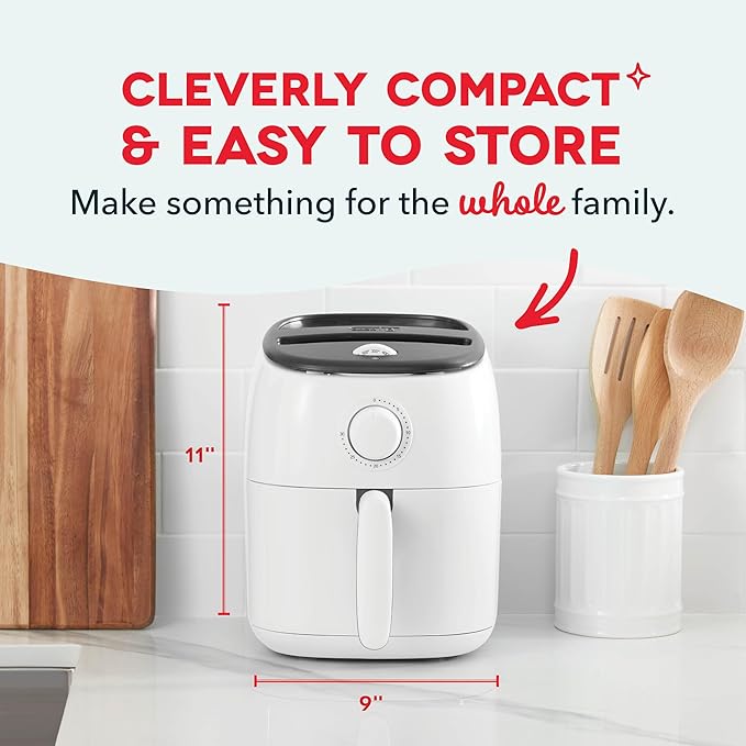 DASH Tasti-Crisp™ Electric Air Fryer Oven, 2.6 Qt., White – Compact Air Fryer for Healthier Food in Minutes, Ideal for Small Spaces - Auto Shut Off, Analog, 1000-Watt