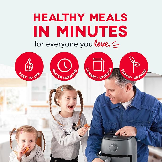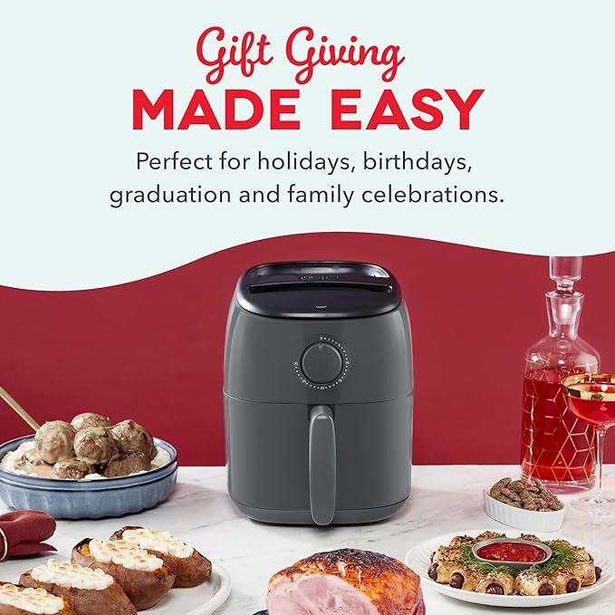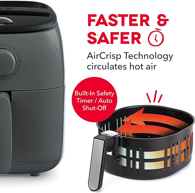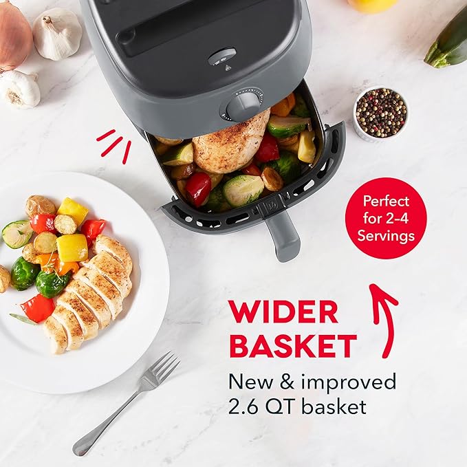 DASH Tasti-Crisp™ Electric Air Fryer Oven, 2.6 Qt., Grey – Compact Air Fryer for Healthier Food in Minutes, Ideal for Small Spaces - Auto Shut Off, Analog, 1000-Watt