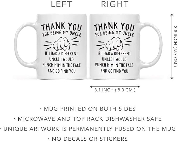 DQG CVT Best Uncle Gift - Thank You for Being My Uncle Funny Coffee Mug - Gag Gifts For Uncles - Cool Fathers Day Birthday Christmas Gift Ideas From Niece Nephew - Uncle's Novelty Tea Cup 11oz White