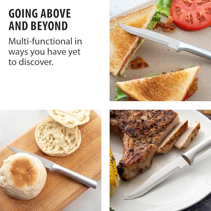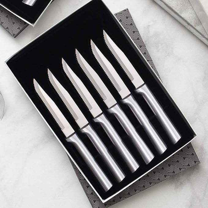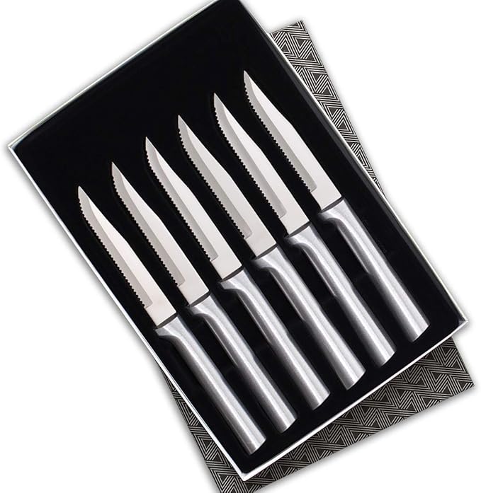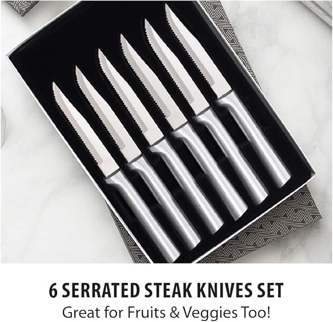 RADA Cutlery 6-Piece Serrated Steak Knife Gift Set (S6S), Stainless Steel Hollow Ground Blades, Made in USA, Silver Handles, Pack of 2