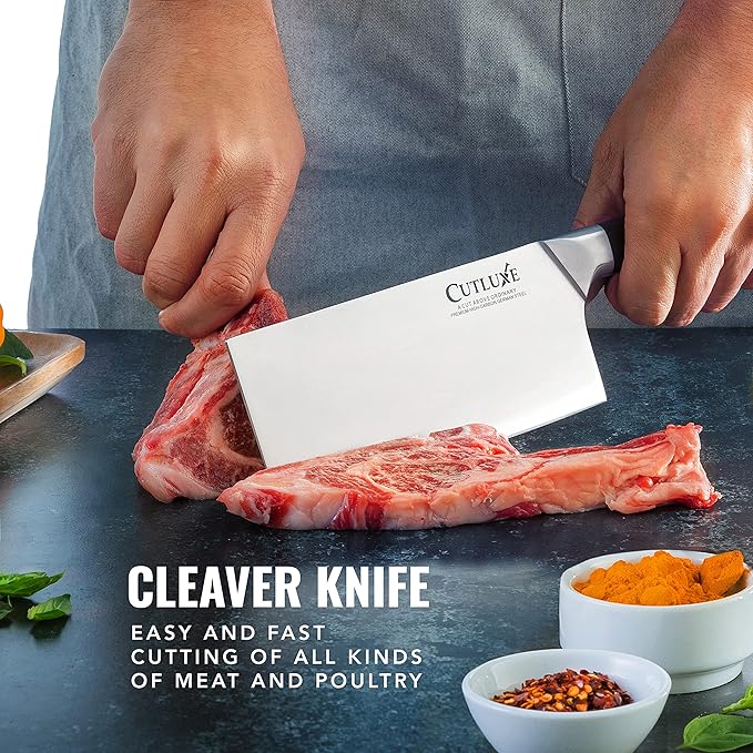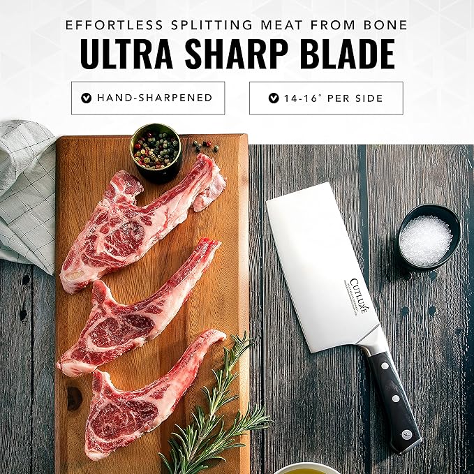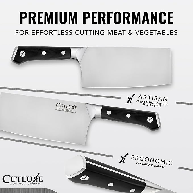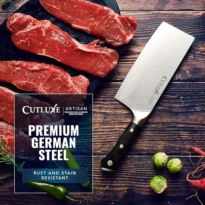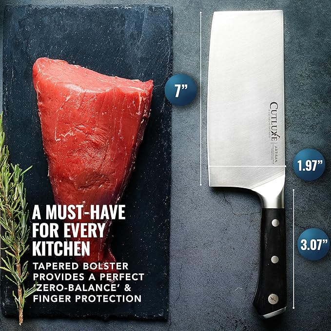 Cutluxe Cleaver Knife - 7" Meat Cleaver, Butcher Knife for Meat Cutting – German Steel Blade, Full Tang, Ergonomic Handle Design – Artisan Series