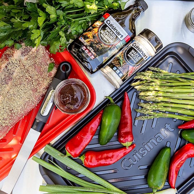 Cuisinart Grilling Prep & Serve Trays, 17x10.5 inch BBQ Tray Safe for Food Handling, 2 Dishwasher Safe Nesting Trays Black & Red, Perfect Grilling Accessories for Cooked & Raw Meat, Fits 6 Burgers