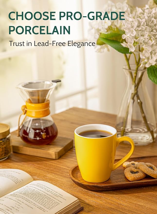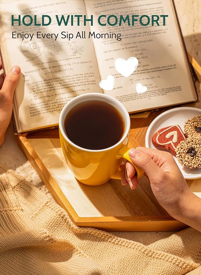 Sweese Porcelain Coffee Mugs - 16 Ounce (Top to the Rim) for Coffee, Latte, Tea, Cocoa, Set of 4, Yellow