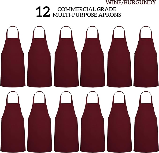GREEN LIFESTYLE 12 Pack Professional Chef Apron – Grilling Aprons for Men, Waterproof Cooking Apron for BBQ, Work or Restaurant Use, Kitchen Aprons for Women – Burgundy, No Pockets