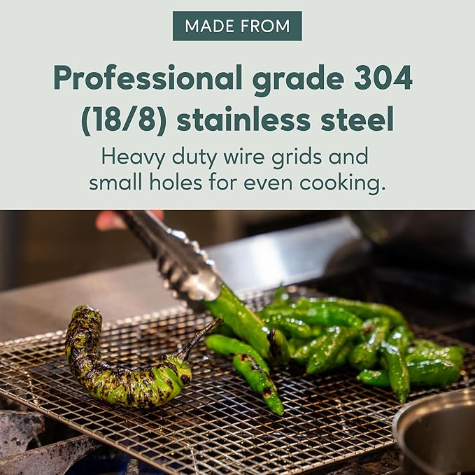 About This HEAVY DUTY STAINLESS STEEL, STURDY DESIGN: Set of 2 cooling racks for jelly roll baking pans are food-safe,... Read more
