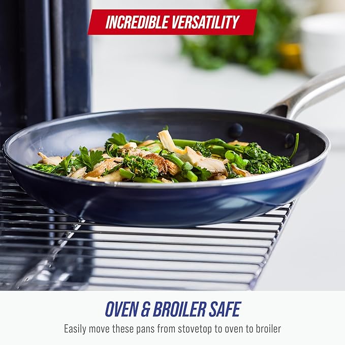 Blue Diamond 8 Inch Nonstick Frying Pan, PFAS Free Ceramic Egg and Omelette Pan, Diamond Infused Nonstick Skillet, Dishwasher & Oven Safe, Durable, Non Toxic, Metal Utensil Safe, Blue