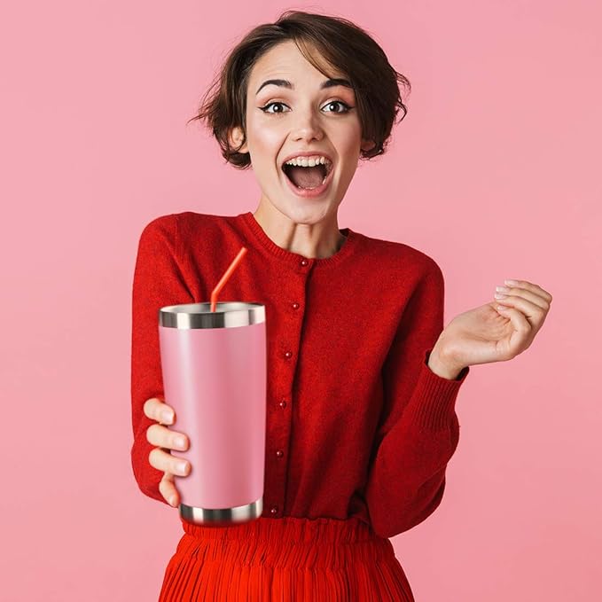 20oz Tumbler Stainless Steel Vacuum Insulated Mug with Lid, Double Wall Travel Mug, Durable Powder Coated Coffee Cup, Suitable for Ice Drinks and Hot Beverage (Pink 6pack)