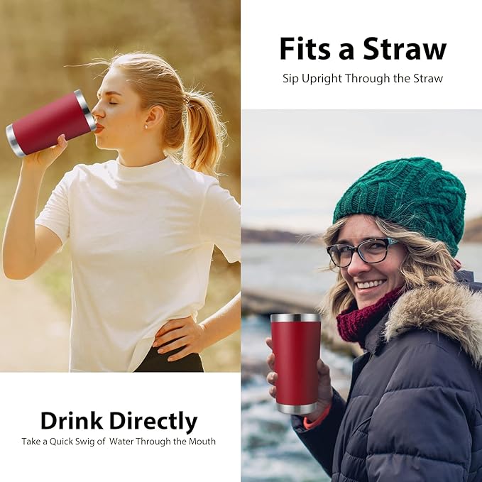 DOMICARE 20oz Stainless Steel Tumbler Bulk with Lid, Double Wall Vacuum Insulated Travel Mug, Powder Coated Coffee Cup (Powder Red, 8)