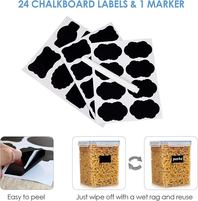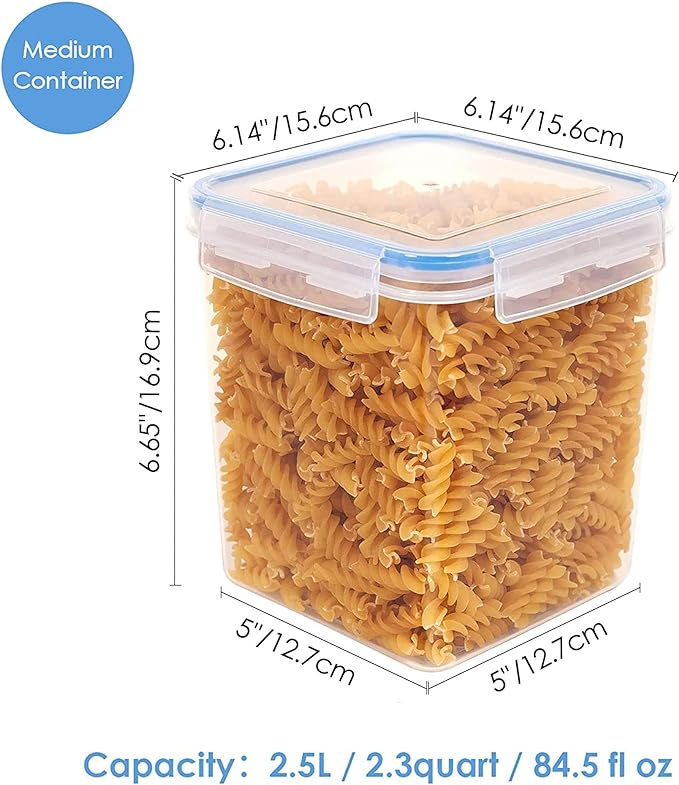 Vtopmart Food Storage Containers 2.5L / 84.5oz, 4 Pieces BPA Free Plastic Airtight Canister for Flour, Sugar, Baking Supplies, with 4 Measuring Cups and 24 Labels, Blue