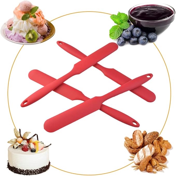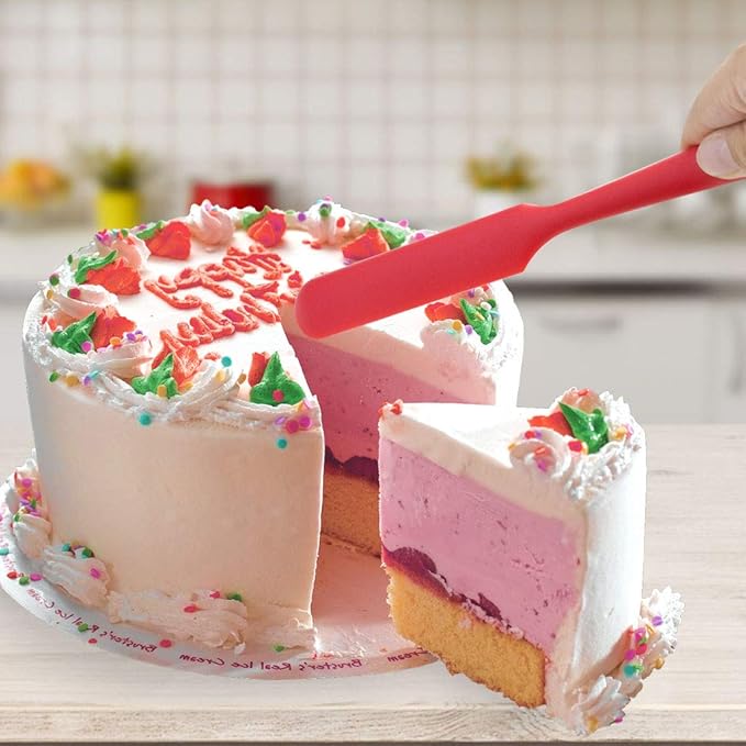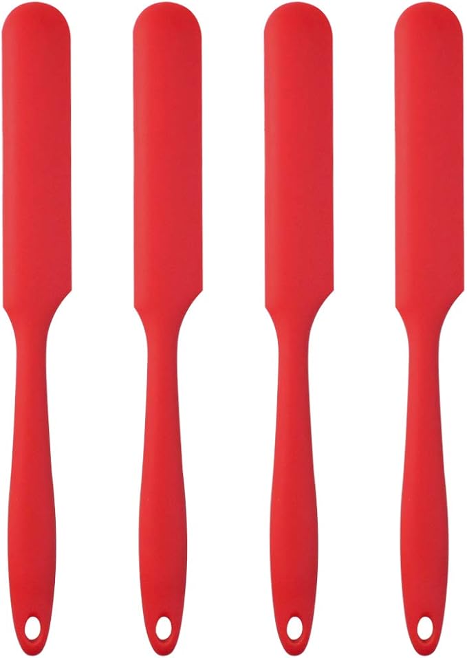 4pcs Silicone Spatula Set Heat Resistant Cake Cream Butter Spatulas Mixing Batter Scraper Non-Stick Flexible Baking Cooking Tool 4 Colors (red)