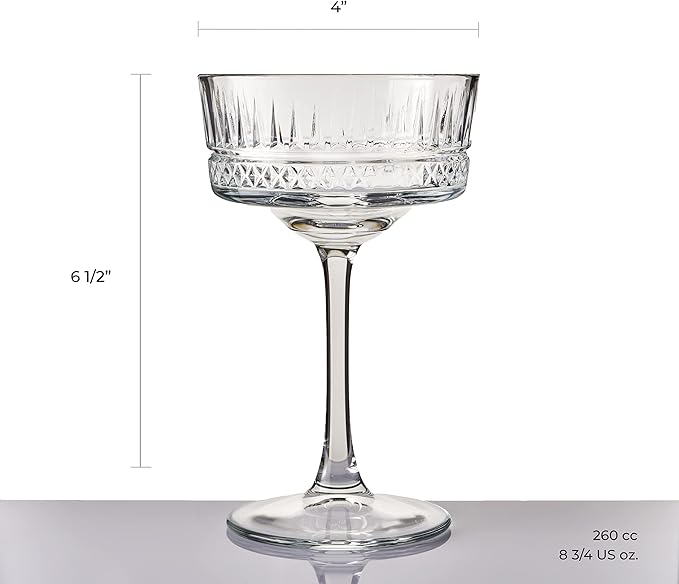 Pasabahce Vintage Coupe Glasses Set Of 4 - Exclusive Champagne, Cocktail, Martini, Wine Glasses - Long Stem Glassware - 8.8 oz - Perfect for Parties, Gifts, Housewarming, Weddings,Aniversary