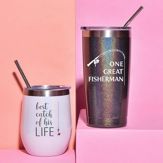 Wedding Anniversary for Couple Friend Lovers Cups Stainless Steel Wine Tumbler Travel Mug with Straw and Lid,2 Pack